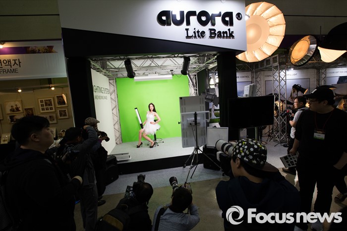 (서울=포커스뉴스) 4일 오후 서울 강남구 코엑스 A,B홀에서 열린 2016 서울국제사진영상기자재전(P&I)에서 관람객들이 모델을 촬영하고 있다.