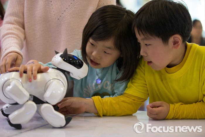 (서울=포커스뉴스) 어린이날을 앞둔 4일 오후 서울 서초구 서울시어린이병원에서 열린 '로봇댄스 및 체험' 행사에 참가한 어린이들이 공연을 관람하고 있다.