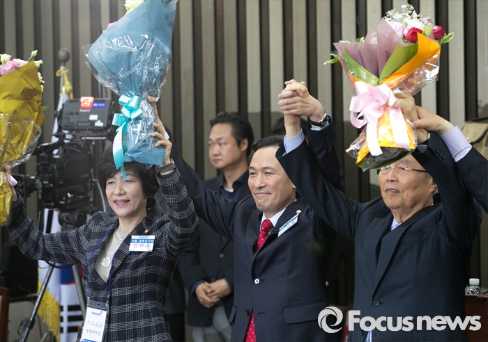 우 신임 원내대표는 결선투표에서 63표를 득표해 56표를 얻은 우원식 의원을 누르고 20대 국회 1당의 원내대표가 됐다.