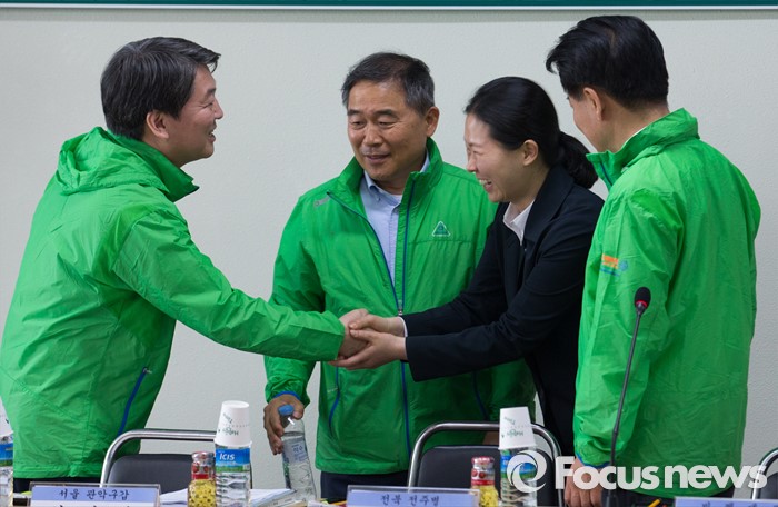 (인천=포커스뉴스) 안철수(왼쪽) 국민의당 상임공동대표와 권은희 의원이 4일 오후 인천 남동구 (주)서울화장품 인천공장에서 열린 국민의당 정책역량 강화 집중 워크샵'중소기업 대표 및 근로자와의 간담회'에 참석해 악수하고 있다.