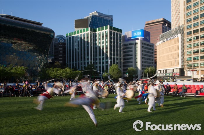 (서울=포커스뉴스) 4일 오후 서울시청 광장에서 열린 '광대 줄타기 연희 한마당'에서 솟대쟁이패 단원들이 멋진 공연을 하고 있다.