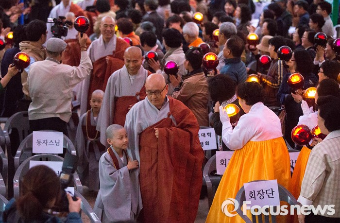 △ 연등 점등식 참석하는 동자승