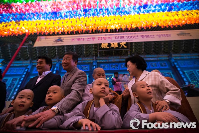 (서울=포커스뉴스) 4일 오후 서울 종로구 조계사에서 연등 점등식이 열리고 있다.