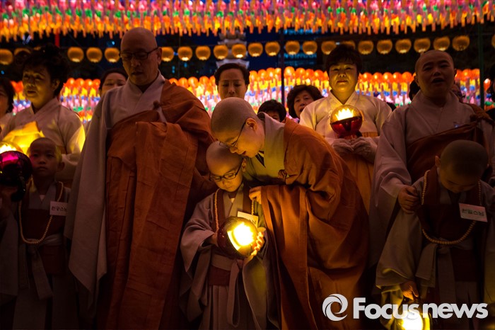 (서울=포커스뉴스) 4일 오후 서울 종로구 조계사에서 연등 점등식이 열리고 있다.