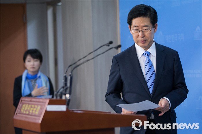 (서울=포커스뉴스) 5일 오전 서울 여의도 국회에서 양승조 더불어민주당 가습기 살균제 특위 위원장이 진상 파악을 위한 성명서를 발표하기 위해 정론관을 들어서고 있다.