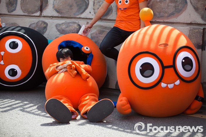 (서울=포커스뉴스) 어린이날을 맞아 5일 오후 서울 영동대로 일대에서 열린 '2016 C-페스티벌'에서 캐릭터 인형을 입은 한 참가자가 인형탈을 벗고 휴식을 취하고 있다.