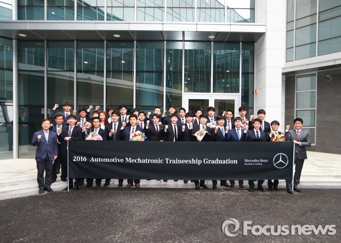 (서울=포커스뉴스) 메르세데스-벤츠 코리아는 지난달 27일 경기도 용인에 위치한 트레이닝 센터에서 메르세데스-벤츠 AMT(오토모티브 메카트로닉 트레이니십) 프로그램 졸업식을 마쳤다고 6일 밝혔다.