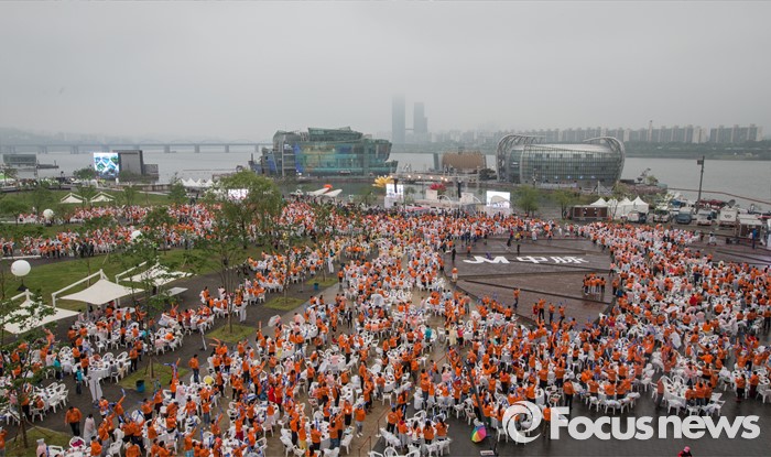 (서울=포커스뉴스) 6일 오후 서울 반포한강공원에서 중국 건강보조제품 회사 중마이그룹 직원들이 삼계탕 파티를 즐기고 있다. 이날 한강공원을 찾은 4천여명의 중마이그룹 직원들은 삼계탕 파티와 태양의 후예 OST 미니 콘서트 등을 즐겼다.