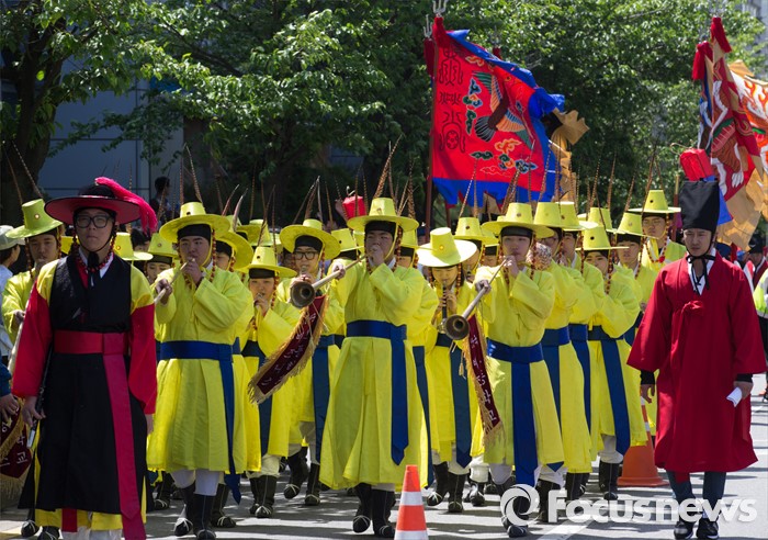 (서울=포커스뉴스) 7일 오전 서울 구로구 궁동저수지생태공원 일대에서 '정선옹주 시집가는 날' 참가자들이 퍼레이드를 하고 있다. 정선옹주는 조선 14대 임금인 선조와 후궁 정빈 민씨의 딸이다.