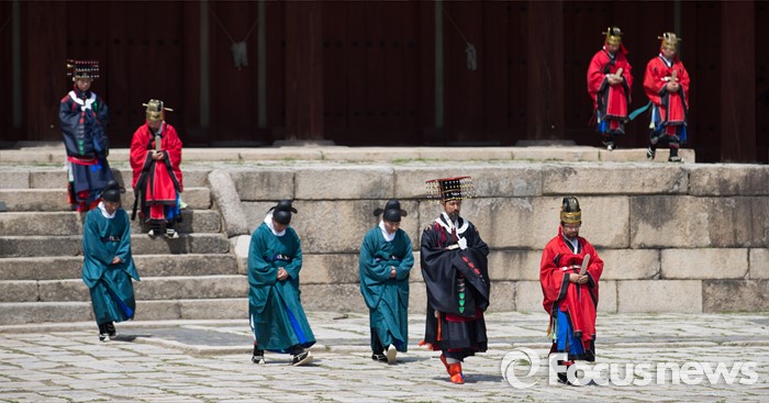 (서울=포커스뉴스) 7일 오후 서울 종묘 정전에서 열린 '조선의 세자빈 혼례를 고하다' 행사에서 참가자들이 묘현례를 재현하고 있다. 묘현례는 왕비나 세자빈이 왕실 혼례를 마친 후 조선왕조 역대 왕가 왕비의 신주가 모셔진 종묘를 알현하는 의례로서 조선시대 종묘에서 행해지는 국가의례 중 왕실 여성이 참여하는 유일한 행사이다.