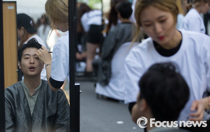 (서울=포커스뉴스) 7일 오후 서울 서대문구 신촌 차없는 거리에서 열린 제1회 신촌 뷰티 페스티벌 '뷰티체어 101' 행사 참가자들이 메이크업과 머리 손질을 받고 있다.