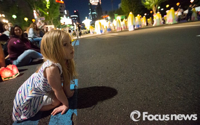 (서울=포커스뉴스) 부처님 오신날을 일주일 앞둔 7일 오후 한 외국인 관광객이 서울 종로구 흥인지문부터 시작해 조계사까지 이어지는 화려한 연등 행렬을 즐기고 있다.