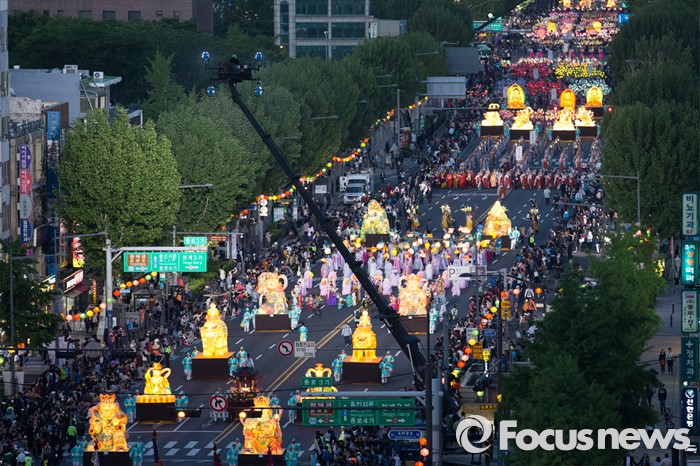 (서울=포커스뉴스) 부처님 오신날을 일주일 앞둔 7일 오후 서울 종로구 흥인지문부터 시작해 조계사까지 이어지는 화려한 연등 행렬이 펼쳐지고 있다.