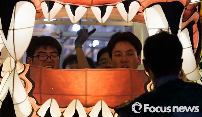 (서울=포커스뉴스) 부처님 오신날을 일주일 앞둔 7일 오후 서울 종로구 흥인지문부터 시작해 조계사까지 이어지는 화려한 연등 행렬이 펼쳐지고 있다.