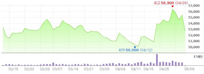 이에 따라 롯데하이마트에 대한 목표주가를 종전 7만5000원에서 6만5000원으로 하향 조정했다.최근 3개월간 롯데하이마트 주가 추이 <그래픽출처=네이버>