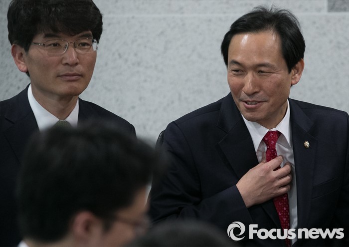 | △ 우상호, 넥타이는 붉은색이지만 |