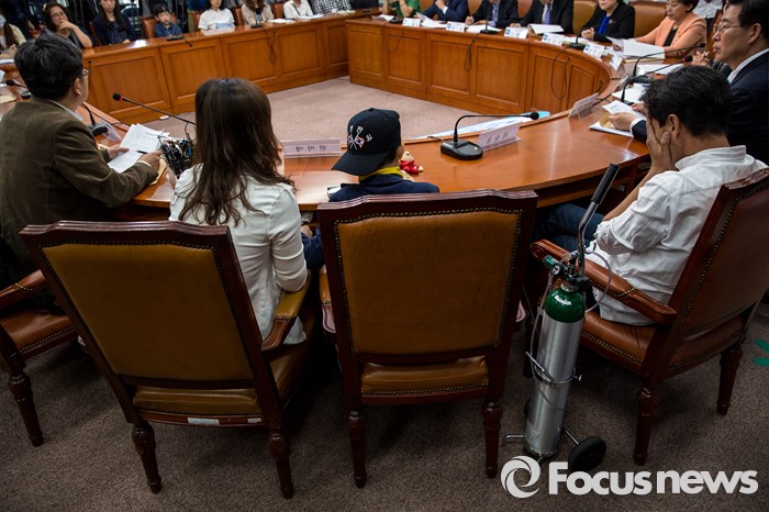 (서울=포커스뉴스) 가습기살균제 피해 가족 및 피해자들이 9일 오전 서울 여의도 국회에서 열린 '더불어민주당, 가습기살균제 대책특위 1차회의'에 참석해 각자의 의견을 전달 하고 있다.