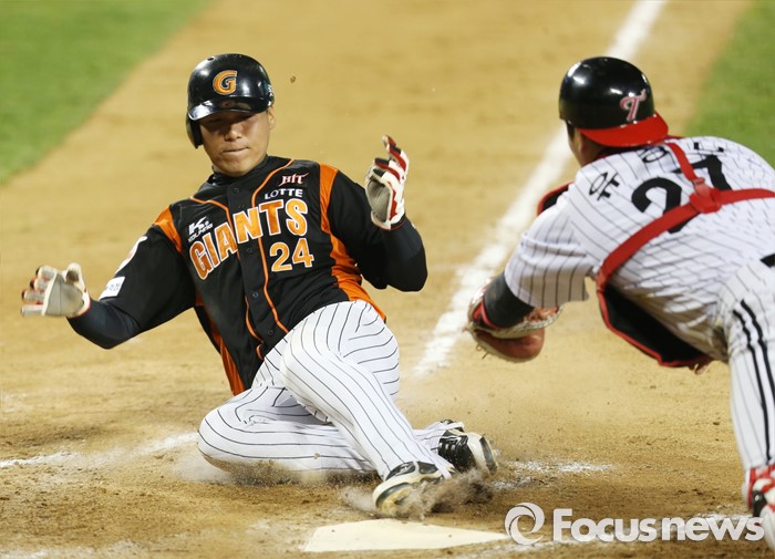 김문호는 4월 21경기에서 타율 4할3푼(86타수 37안타) 1홈런 12타점 출루율 4할8푼5리 장타율 5할7푼으로 맹활약해 '콜핑 4월 월간 MVP'로 선정됐다. 이성민은 4월 한달간 7경기에 등판, 4승1패 평균자책점 3.20으로 기록하며 '다솜 4월 월간 MVP'로 뽑혔다. 각각 상금 200만원을 받는다.(서울=포커스뉴스) 12일 서울 잠실구장에서 열린 2016 프로야구 롯데-LG 경기 7회초 2사 2루에서 롯데 손아섭의 좌익수앞 안타때 2루주자 김문호가 홈인하고 있다. 2016.04.12 우정식 기자