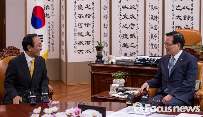 정 의장은 이날 오후 국회의장실에서 노회찬 정의당 원내대표의 예방을 받으면서 이같이 말한 뒤 "연정을 하지 않으면 안 되는 그런 나라로 가야 된다. 그래야 통합으로 갈 수 있다고 본다"고 밝혔다.