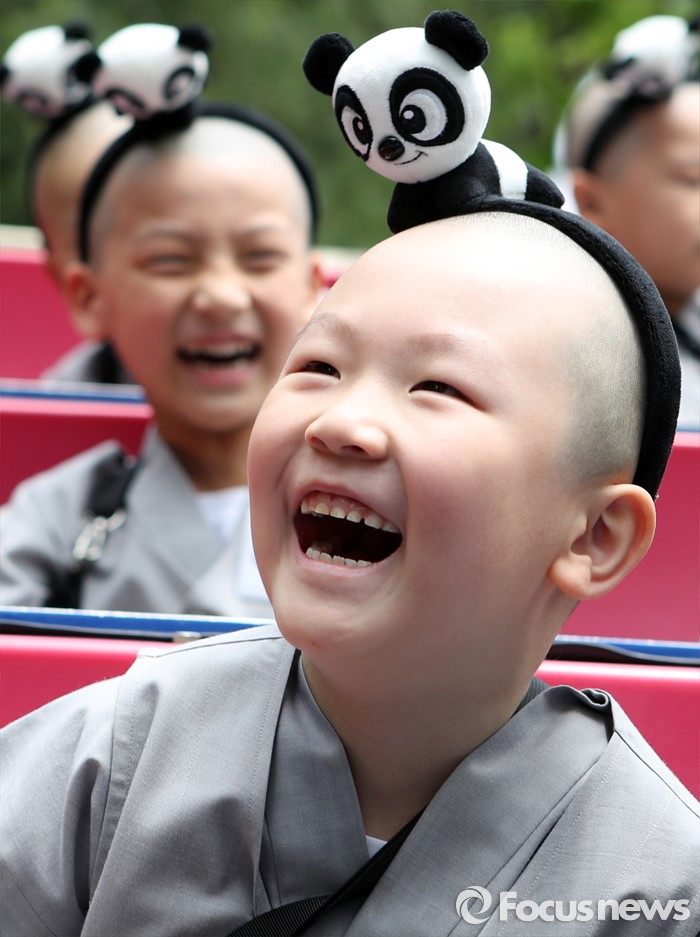 (용인=포커스뉴스) 9일 오전 경기도 용인시 에버랜드에서 동자승들이 놀이기구를 타며 즐거운 시간을 보내고 있다.
