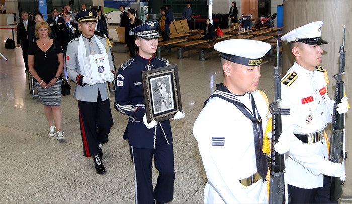 (서울=포커스뉴스) 부산 UN기념공원에 안장을 희망한 6.25전쟁 네덜란드 참전용사 故 니콜라스 프란스 웨셀(Nicolas Frans Wessels)씨의 유해가 9일 오후 인천국제공항에서 운구되고 있다. 6·25전쟁에 네덜란드 반호이츠 부대원(일병)으로 참전한 故 니콜라스 프란스 웨셀씨는 1953년 11월에 한국을 떠났지만 자신이 목숨바쳐 지켰던 한국에 대한 애정이 아주 컸으며, 평소 부산 UN기념공원에 묻힌 전우들을 그리워하다 지난해 4월 7일 "한국에 있는 전우들 곁에 잠들게 해 달라"는 유언을 남긴 채 향년 84세의 일기로 삶을 마감했다. 지난해 5월 부산 UN기념공원에 프랑스 참전용사 故 레몽 베나르씨가 사후 안장 실시된 이후 4번째인 웨셀 씨는 오는 12일 오전 부산UN기념공원에 안장된다. <사진제공=국가보훈처>