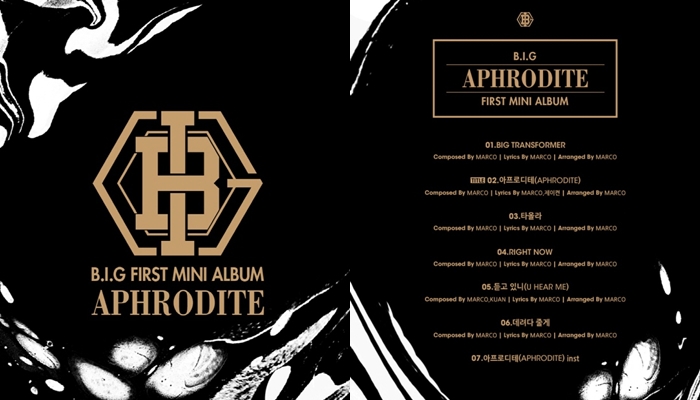 비아이지(제이훈·희도·건민·국민표·벤지)는 지난 9일을 시작으로 공식 SNS를 통해 12시간 간격으로 첫 미니앨범 ‘아프로디테(APHRODITE)’의 재킷 이미지와 트랙리스트를 공개하며 컴백에 대한 기대감을 높였다.