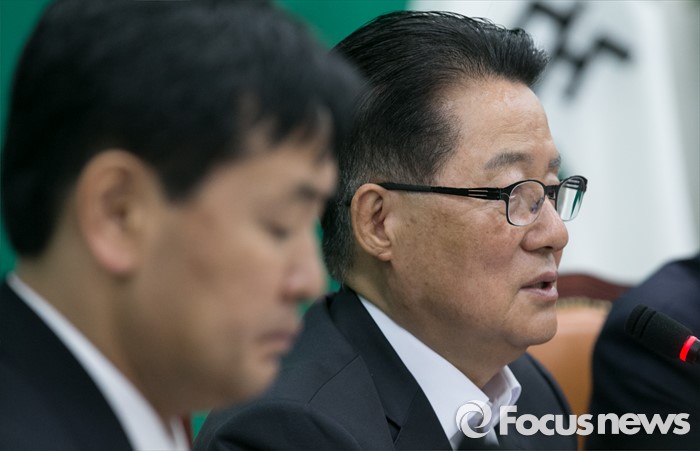 (서울=포커스뉴스) 박지원(오른쪽) 국민의당 원내대표가 10일 오전 서울 여의도 국회에서 열린 원내대책회의에 참석해 모두발언을 하고 있다.