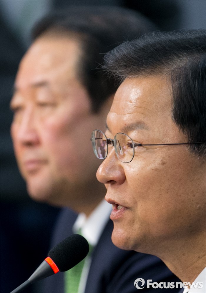 (서울=포커스뉴스) 천정배(오른쪽) 국민의당 공동대표가 10일 오전 서울 여의도 국회 의원회관에서 열린 당선자 총회 및 3차 집중워크숍에 참석해 모두발언을 하고 있다.