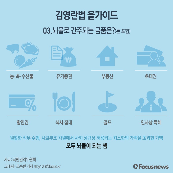 | △ [그래픽] 김영란법 올가이드 03. 뇌물로 간주되는 금품은? |