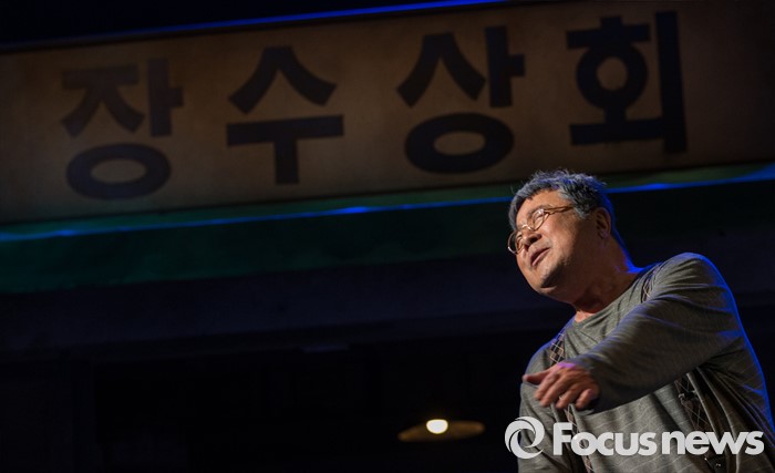(서울=포커스뉴스) 10일 오후 서울 종로구 동숭아트센터에서 열린 연극 '장수상회' 프레스콜에 참석한 배우 백일섭이 극의 주요장면을 시연하고 있다.