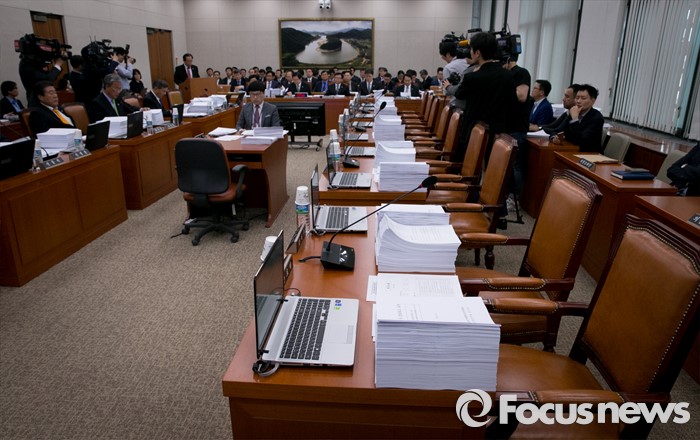 (서울=포커스뉴스) 10일 오후 서울 여의도 국회에서 열린 농림축산식품해양수산위원회 전체회의에 불참한 새누리당 의원들의 빈 자리가 보이고 있다. 이날 회의는 세월호 특별법 개정안 내용 중 특조위 활동 기간 연장과 관련 이견으로 여당 의원들이 불참한 채 진행됐다.