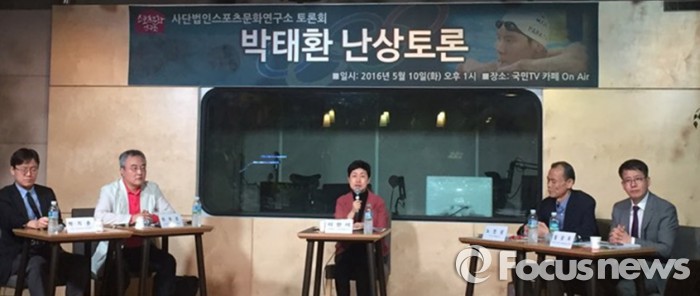 ㈔스포츠문화연구소가 주최한 이날 토론회는 박태환 선수 스승인 노민상 감독과 최동호 스포츠공정위원회 위원, 박지훈 스포츠문화연구소 사무국장(변호사), 임성우 변호사, 이현서 아주대학교 스포츠레저학과 교수가 참석했다.