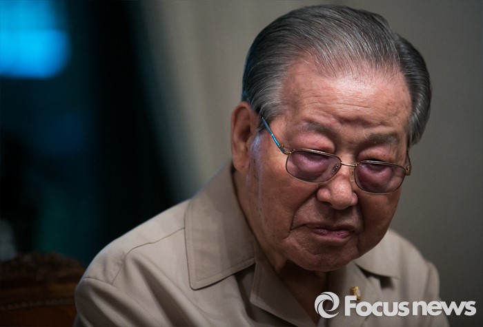 (서울=포커스뉴스) 김종필 전 총리가 10일 오후 서울 중구 자택을 방문한 정진석 새누리당 원내대표와 환담을 하고 있다.