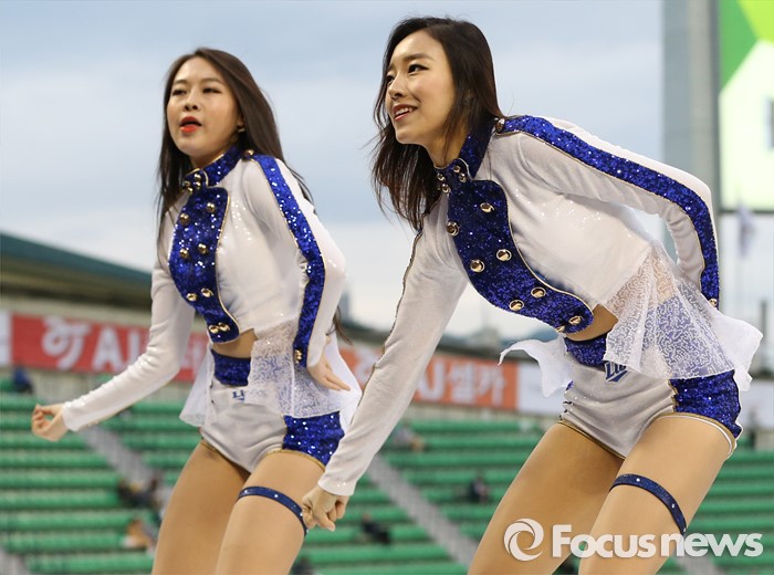 (서울=포커스뉴스) 10일 서울 잠실구장에서 열린 2016 프로야구 삼성-LG 경기에서 삼성 치어리더가 승리를 부르는 손짓으로 관중들의 응원을 유도하고 있다.