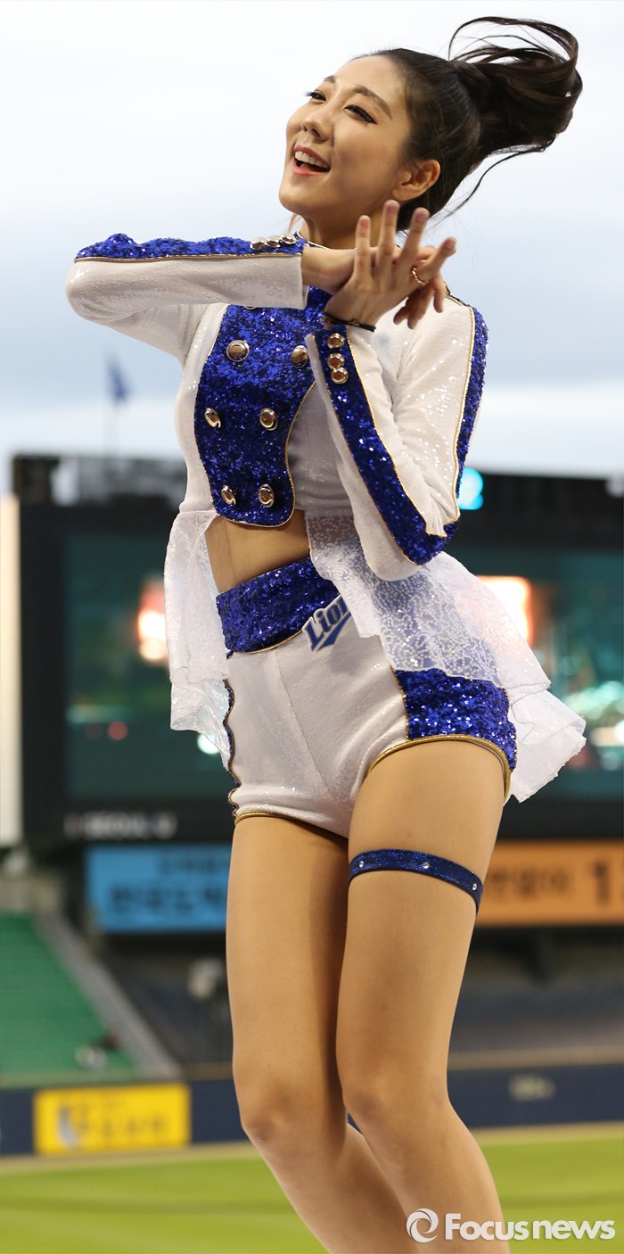 (서울=포커스뉴스) 10일 서울 잠실구장에서 열린 2016 프로야구 삼성-LG 경기에서 삼성 치어리더가 승리를 부르는 손짓으로 관중들의 응원을 유도하고 있다.