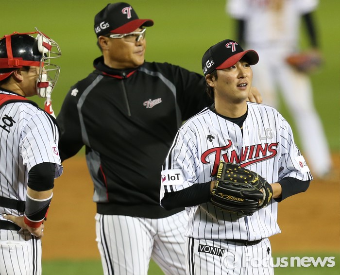 (서울=포커스뉴스) 10일 서울 잠실구장에서 열린 2016 프로야구 삼성-LG 경기 4회초 무사 1,3루 삼성 최형우 타석때 LG 선발투수 우규민이 교체돼 마운드를 내려가고 있다.
