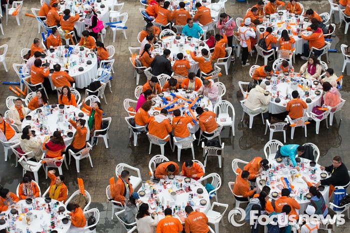 (서울=포커스뉴스) 10일 오후 서울 서초구 반포한강공원에서 중국 건강보조제품 회사 중마이과기발전유한공사 소속 임직원들이 삼계탕 만찬을 즐기고 있다.