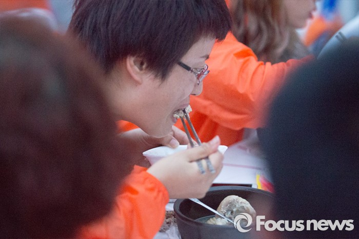 (서울=포커스뉴스) 10일 오후 서울 서초구 반포한강공원에서 중국 건강보조제품 회사 중마이과기발전유한공사 소속 임직원들이 삼계탕 파티를 즐기고 있다.