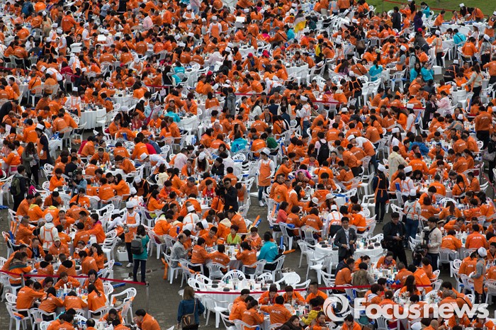 (서울=포커스뉴스) 10일 오후 서울 서초구 반포한강공원에서 중국 건강보조제품 회사 중마이과기발전유한공사 소속 임직원들이 삼계탕 만찬을 즐기고 있다.