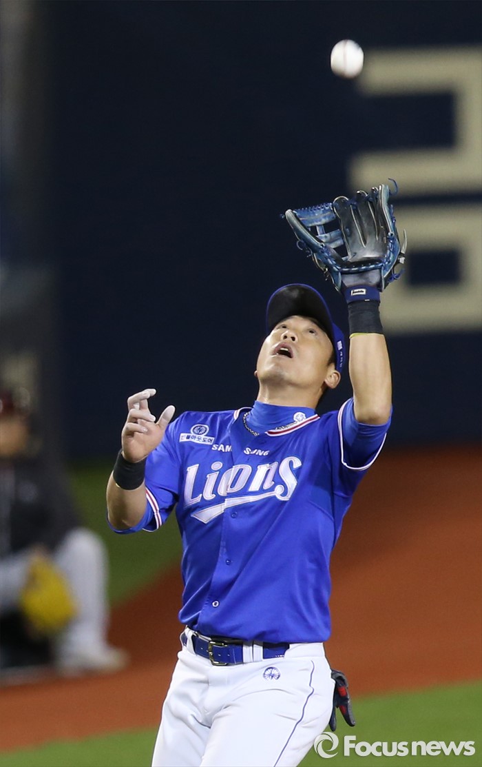 (서울=포커스뉴스) 10일 서울 잠실구장에서 열린 2016 프로야구 삼성-LG 경기 5회말 무사 1루에서 삼성 3루수 조동찬이 LG 서상우의 파울 플라이볼을 잡고 있다.