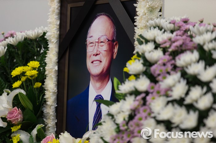 (서울=포커스뉴스) 10일 오후 서울 송파구 서울아산병원 장례식장에 마련된 故 강영훈 전 국무총리의 빈소에 고인의 영정이 놓여있다.