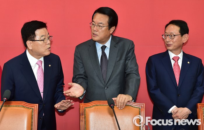 그러면서 최근 일부 의원들 사이에서 제기된 손학규 더불어민주당 전 상임고문의 비대위원장 영입 주장과 관련 "(설문 결과에 손학규 전 고문의 이름은) 없는 것 같다"고 일축하기도 했다.(서울=포커스뉴스) 정진석(가운데) 새누리당 원내대표가 9일 오전 서울 여의도 국회에서 신임 원내대표단과의 티타임에 앞서 김광림(왼쪽) 정책위의장과 대화하고 있다. 오른쪽은 김도읍 원내수석부대표. 2016.05.09 박동욱 기자