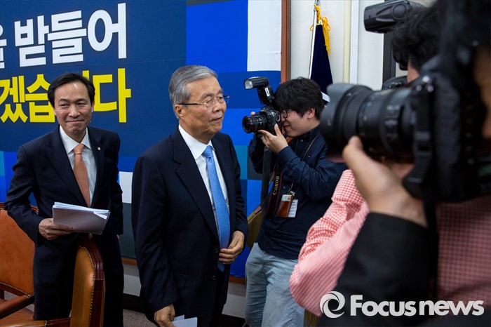 (서울=포커스뉴스) 김종인(왼쪽 두 번째) 더불어민주당 비상대책위 대표와 우상호 원내대표가 11일 오전 서울 여의도 국회에서 열린 비상대책위원회의를 마친 뒤 회의실을 나서고 있따.