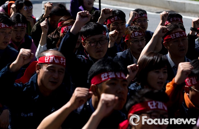 | △ 주먹 쥔 노조원들 |