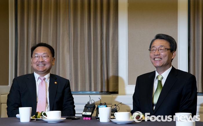 | △ 면담하는 김성식-유일호 |