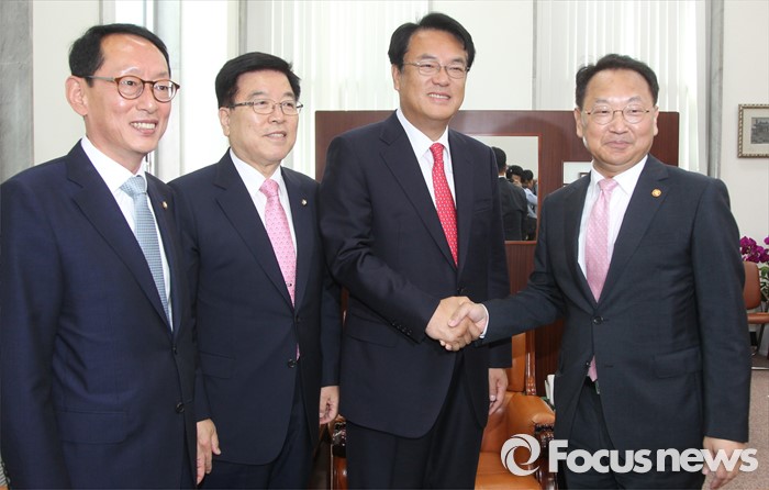 | △ 유일호 부총리, 與 신임 원내지도부 예방 |