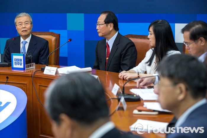 (서울=포커스뉴스) 김종인(왼쪽) 더불어민주당 비상대책위 대표와 린더푸(왼쪽 두 번째) 대만-한 의원친선협회장이 11일 오전 서울 여의도 국회에서 면담 하고 있다.
