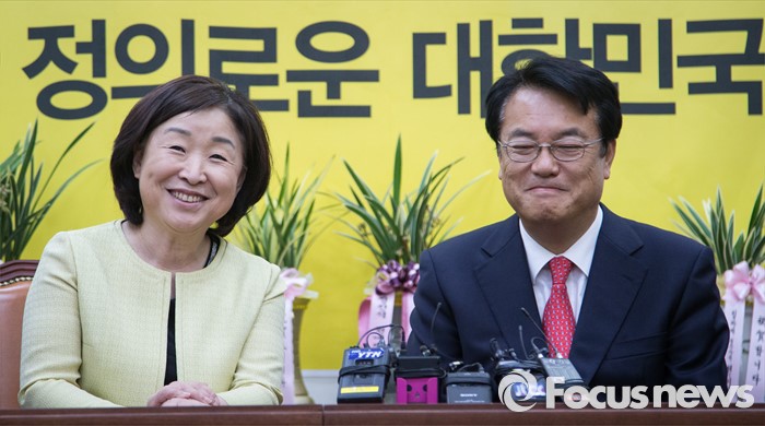 (서울=포커스뉴스) 정진석 새누리당 원내대표가 11일 오전 서울 여의도 국회에서 심상정 정의당 상임대표를 예방해 대화하고 있다.