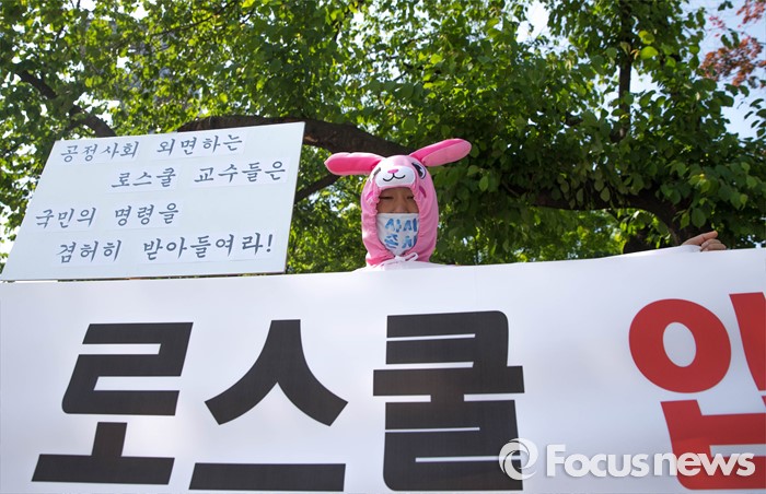 (서울=포커스뉴스) 11일 오전 서울 관악구 서울대학교 앞에서 사시존치를위한고시생모임 회원들이 교육부의 전수조사 결과 발표를 규탄하며 시위를 하고 있다.