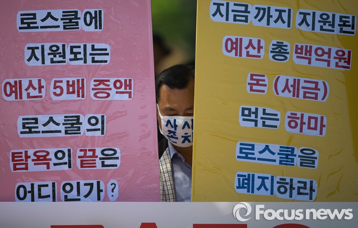 (서울=포커스뉴스) 11일 오전 서울 관악구 서울대학교 앞에서 사시존치를위한고시생모임 회원들이 교육부의 전수조사 결과 발표를 규탄하며 시위를 하고 있다.